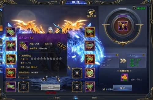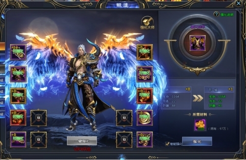 消耗金币即进行装备强化,提高装备属性,成功率100%。强化最高等级受角色等级限制(强化等级不超过角色等级)。